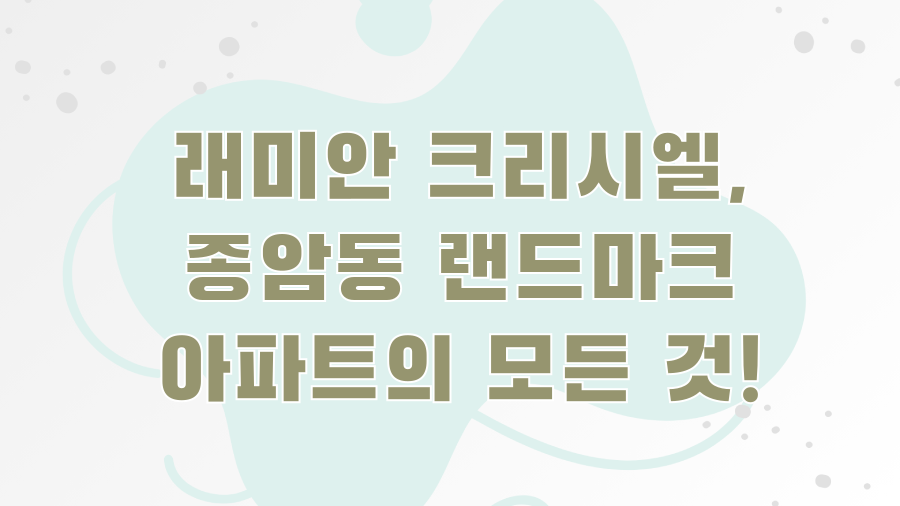 래미안 크리시엘, 혹시 '크리시엘'이라는 이름에 숨겨진 뜻을 아시나요? 종암동 랜드마크, 래미안 크리시엘에 대해 알아보고, 이 아파트가 왜 많은 사람들에게 꾸준히 사랑받고 있는지, 그리고 앞으로의 가치는 어떨지 함께 살펴보겠습니다. 2004년에 지어진 이 아파트의 매력 속으로 함께 떠나볼까요?
